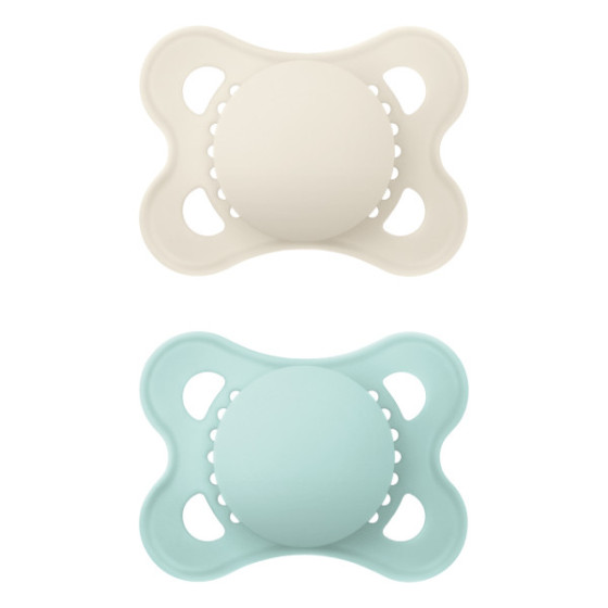 Symetryczny smoczek zapewnia, że leży prawidłowo i czuje się tak samo bez względu na to, jak się obraca.