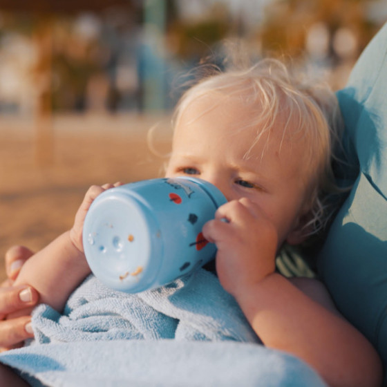 Idealny poza domem - dzięki praktycznej budowie kubek sprawdza się nawet podczas dynamicznych zabaw dziecka poza domem.